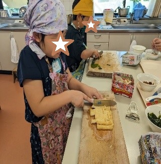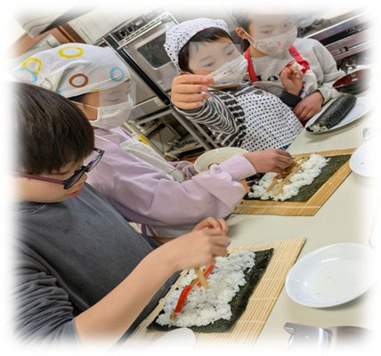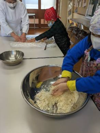 ある班は準備した具を入れ忘れたことに気付きましたが、子どもたちのアイデアで残ったご飯に混ぜ、チラシ寿司風に。