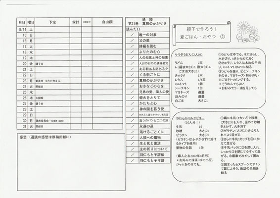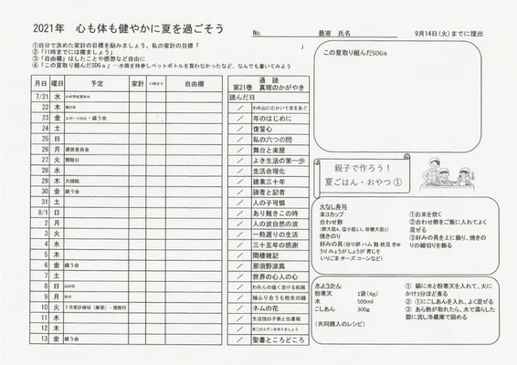 高崎友の会では夏休みに【心も体も健やかに夏を過ごそう】と励み表🧡があります。